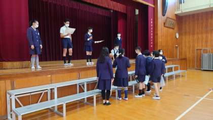 最後は、毎回集会委員の子ども達が集まって反省会をします。よかったところや次に向けてがんばりたいことなどを話し合って児童集会は終了です。もっと楽しい集会を常にめざしている子ども達です。