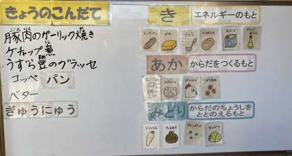 洋風な豆の献立に子どもたちは、「おいしーい」との声が多かったです。