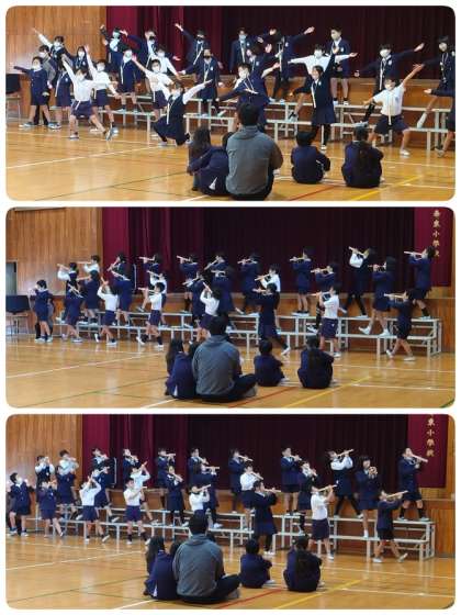 今日の児童集会は、11月30日に九条北小学校で開催される「五校園音楽交流会」に参加する3・4年生が、当日発表するリコーダーの演奏と歌を披露しました。いろいろな工夫があってとてもステキでした。他の学年からは、「がんばってきてね」の応援の拍手をいっぱいもらいました。当日がとても楽しみです。
