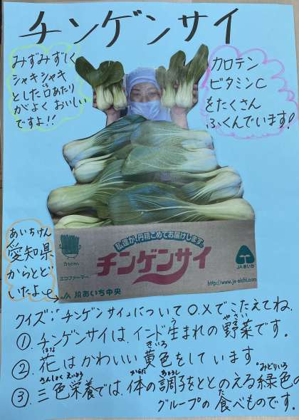 今日の給食では、ツナとコーンとチンゲンサイを炒めて、塩、こしょう、しょうゆで味付けしています。