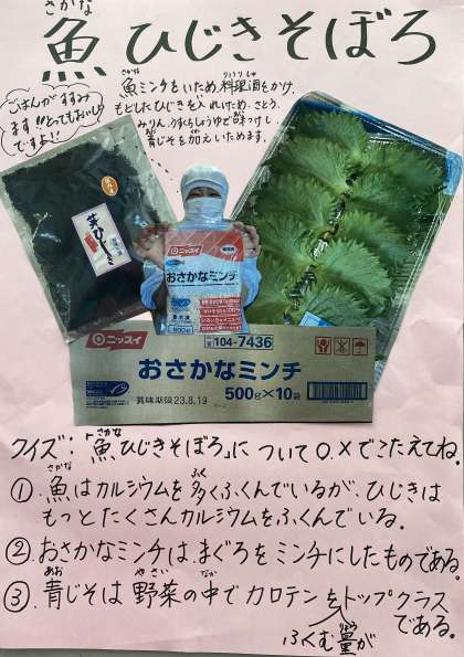 魚ひじきそぼろは、しその香りがよく、ごはんにとてもよくあって食欲がすすむ一品です。