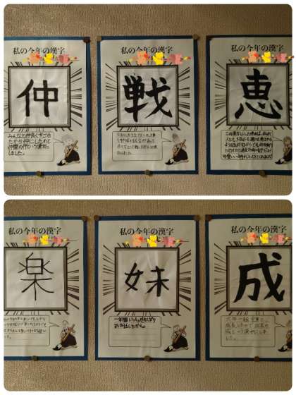 玄関ロビーの掲示板に、6年生の「今年の漢字」が貼ってあります。その漢字を選んだ理由も書いてあります。子ども達の思いが伝わってくるので紹介します。今日はまず6人紹介します。