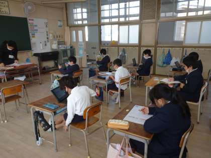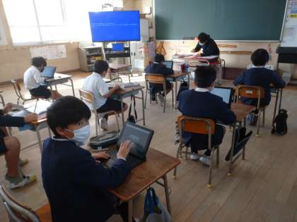 テストのあと、学年のまとめをしています。それぞれが調べ学習をしています。