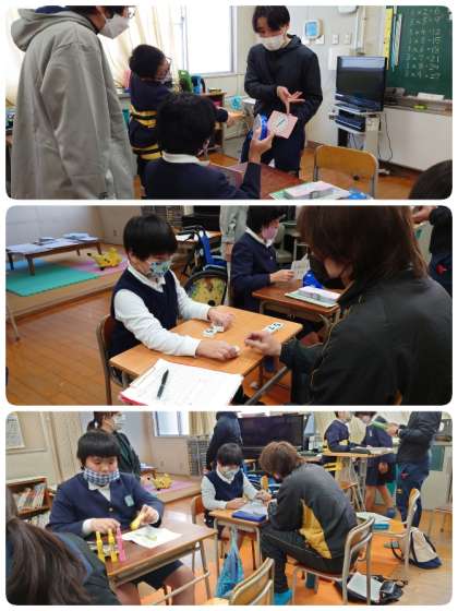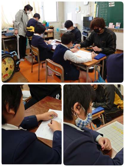 4時間目になかよし学級の公開授業を行いました。算数の書き方や、たし算・ひき算・かけ算、時計の読み方、形合わせなど、どの子も自分の課題に向かってどんどん学習を進めていきました。一人一人が集中して学習していて、先生からたくさん丸をもらっていました。とってもよくがんばっていましたよ。