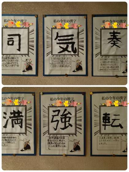 6年生の子ども達が書いた今年の漢字。一人一人の思いが伝わってきます。