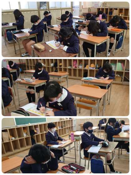 3学期の新しい漢字ドリルを配ってもらって、さっそく新出漢字の学習をしていました。一角ずつていねいに書き進めていたので、整った字を書くことができていました。今年もしっかり漢字覚えようね!