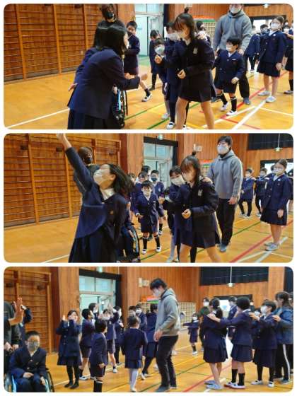 今日の児童集会は「ジャンケン列車」でした。講堂に入る前に全員手指消毒をし、マスクもきちんと着用しました。