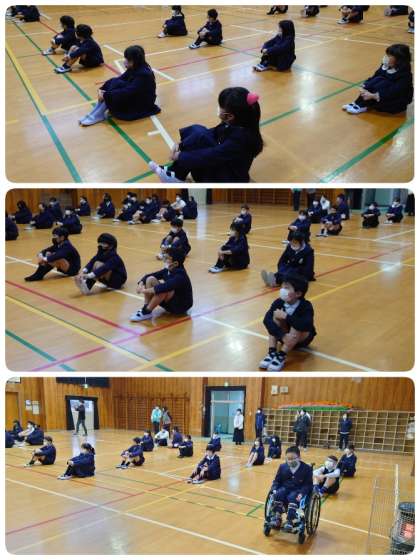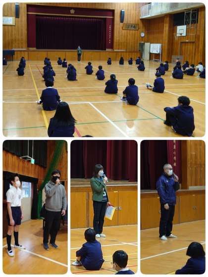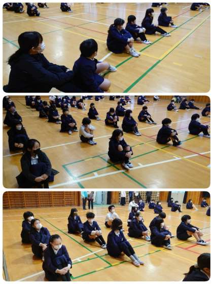 今日の児童朝会では、1つ目に今週の天気について、2つ目に管理作業員さんが作ってくれたランドセル置き場のこと、3つ目に11月に実施した「赤い羽根共同募金」の感謝状についてお話をしました。