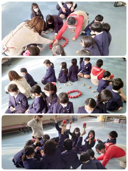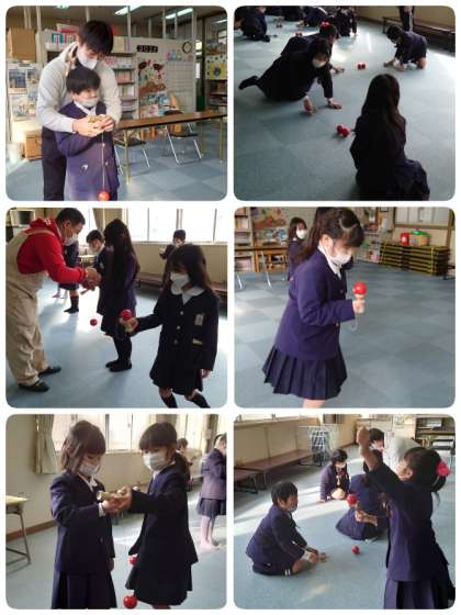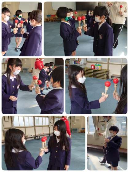 「たこやき一丁」や「カブトムシ」等の技も教えてもらいました。この技を使ったゲームも楽しみました。あっという間の45分。今日教えてもらった技が上手にできるように休み時間に練習しますね。来年もよろしくお願いします。