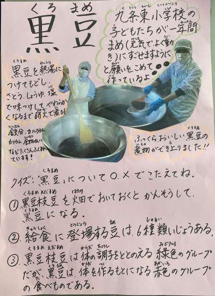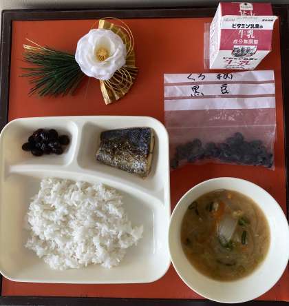 おせち料理で、黒豆を食べていない子どもたちも、給食の「黒豆の煮もの」は、ほとんどの子どもたちが「おいしーい」と食べていました。
