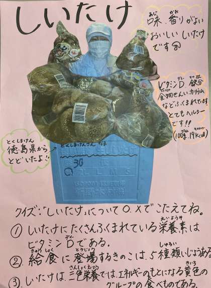 今日の「はくさいのクリーム煮」に、しいたけが入っていたのですが、しいたけの香りとうまみがまろやかなクリームの味と合わさってとてもおいしく、子どもたちに好評でした!!!