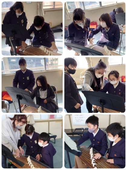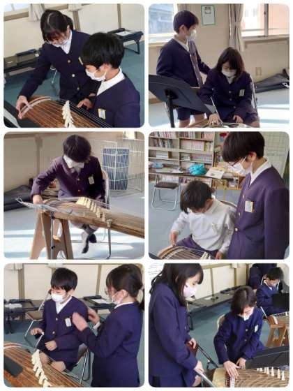 9台もお筝を持ってきてくださったので、子ども達は2時間もたっぷり筝の体験をすることができました。
