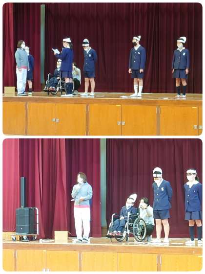 給食委員会の子ども達が、代表できてくれた給食調理員さんに感謝の手紙を渡しました。給食調理員さんから「毎日残さず給食を食べてくれてうれしいです。これからもおいしい給食を作りますね。」とお話がありました。