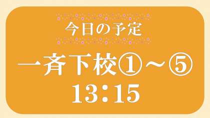 また、本日午後より大阪市の総合研究発表会に教員が参加するため、1〜5年生の下校は13:15になります。ご予定よろしくお願いします。