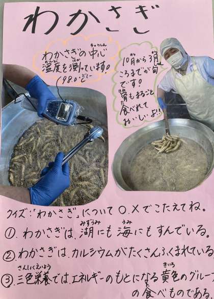 一人、2尾で配管しましたが、少し余るので教室ではじゃんけんで勝った人は、とてもうれしそうな笑顔でした。子どもたちに人気の献立です。