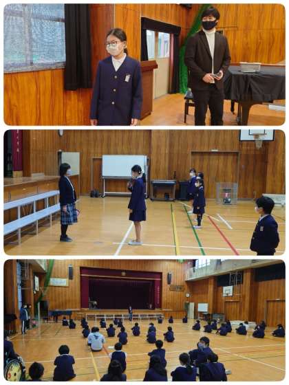 今日の児童朝会では、今週水曜日の学習参観のことについてお話ししました。