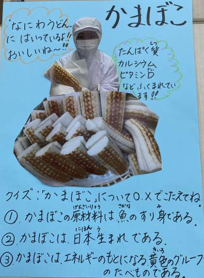 かまぼこは、三食栄養では、体を作る赤色の食べもののグループです。