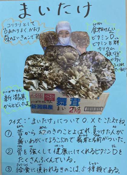 まいたけは、ビタミンDをたくさん含み、カルシウムが骨に吸着するのを助ける働きがあります。