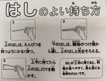 今日の給食カレンダーに「はしのよい持ち方」が掲載されていましたので、紹介します。