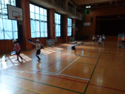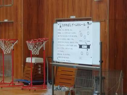 今日は、ながれぼしゲームで、ボールを包んだハネを箱で受け取るゲームをしました。