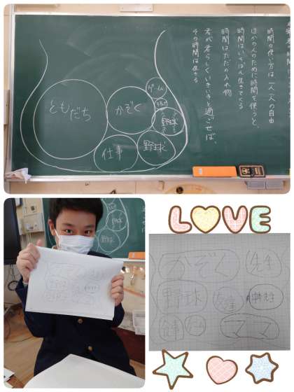 担任の先生の器の中に書かれていたものは、「家族」「友達」「野球」「子育て」「仕事」などでした。