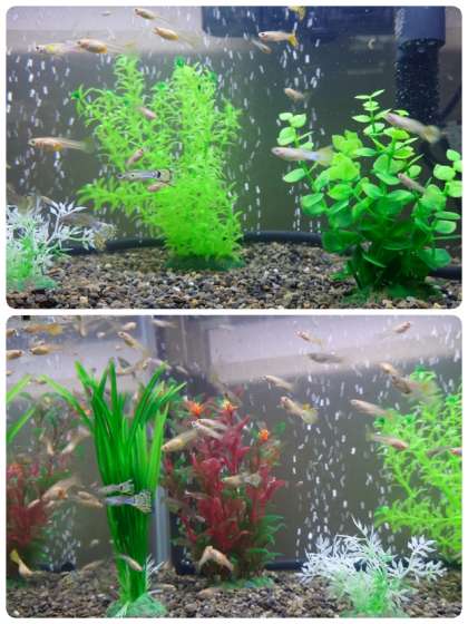 先日、管理作業員さんが、グッピーの水槽をピカピカにしてくれました。水が透き通っていてとてもきれいです。グッピーも気持ちよさそうにスイスイ泳いでいます。