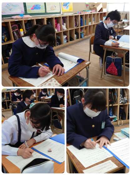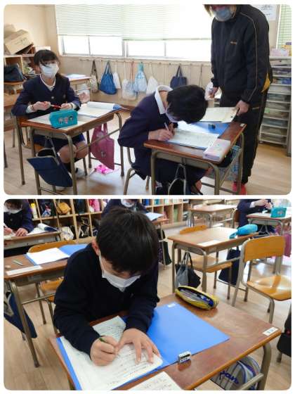 5年生は、この1年間を振り返り、できるようになったことやがんばったことなどをワークシートにまとめていました。キャリア・パスポートは、小学校1年から高校3年まで引き継がれていくもので、自分自身の変容や成長を振り返ることができるようになっています。子ども達は、それぞれの項目にびっしり書き込んでいました。そのくらいがんばった1年だということですね。(*^_^*)