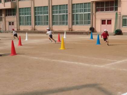 今日も気候のよい中で、充分に体を動かして運動しました。
