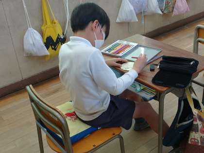 次の1年生がわくわくするようなメッセージや写真立てを作っています。