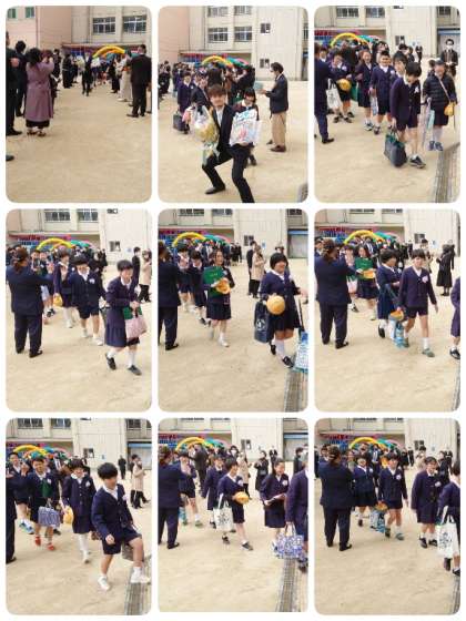 堂々と入場してきた卒業生。最後の最後まで立派な態度で卒業していきました。中学校でも活躍してくださいね。