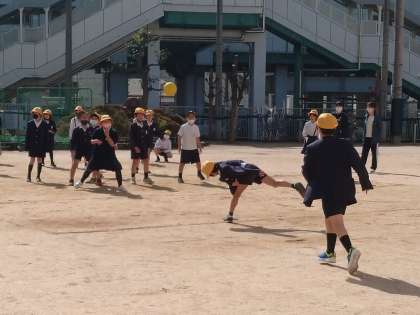 今日は、3 4年生でドッジボールをしました。よい天気の中、楽しんでいます。