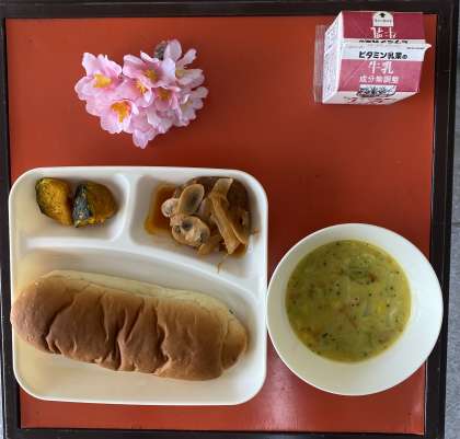 今日の給食では、コーンとキャベツのスープでしたが、コーンのコクと、キャベツの甘さとがマッチしてとてもおいしいスープになりました。