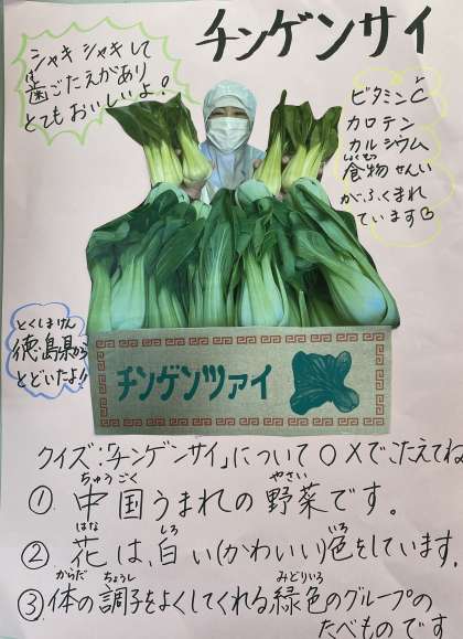 からあげは、九条東小学校の人気ランキング上位の献立です。揚げ物の後にさっぱりとしたチンゲンサイともやしの甘酢あえもおいしいと人気でした。