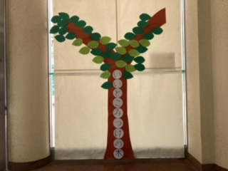 「いいとこみつけの木」を玄関に掲示しています。ともだちの良いところをたくさん見つけてほしです。