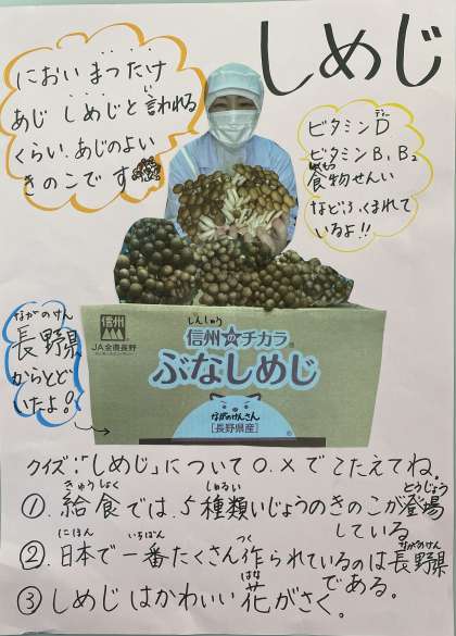 大阪市の学校給食では、きのこは、しめじ、しいたけ、なめこ、まいたけ、エリンギ、えのきだけ、マッシュルームが色々な献立で登場しています。