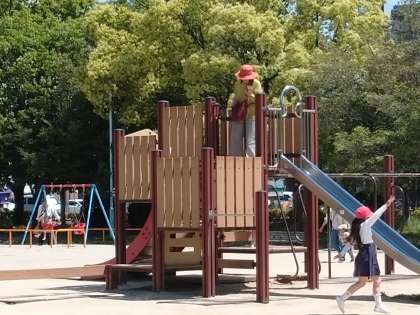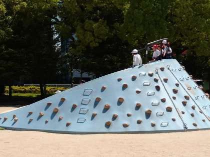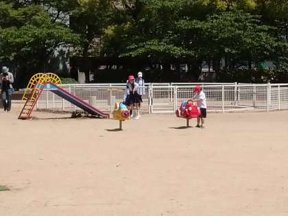 遊具で思い切り遊びました。そろそろ学校に戻ります。