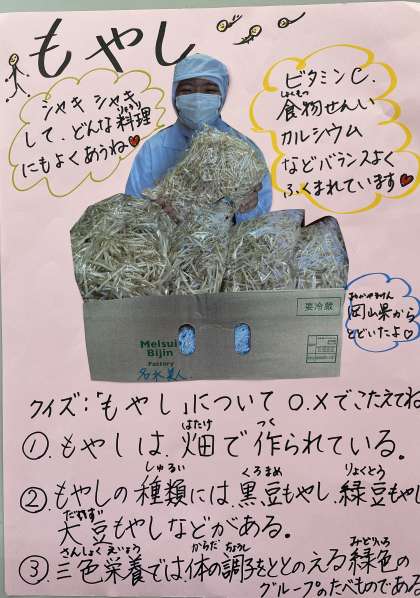 今日の「もやしのゆずの香あえ」はゆずの香りがしてさっぱりとした味でとてもおいしいと子どもたちに人気の一品でした。😊