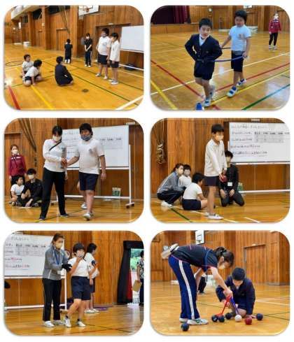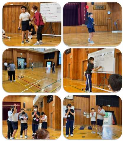 なかよしタイムの時間に、フラフープリレーとボッチャをしました。リーダー(6年生)を中心にボールの投げ方や、ねらう場所を相談しながら、みんな楽しくプレーすることができました。最後にはメダルをもらって、とても嬉しそうでした。これからも、ボッチャが上手になるようみんなで練習していきます。
