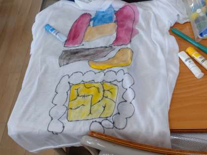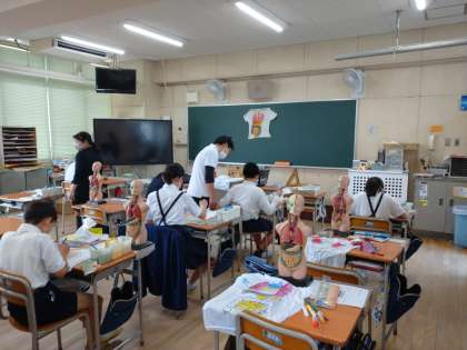 今日は、内臓の学習をしました。模型を見ながら内臓の位置や色を見て、絵に描きました。