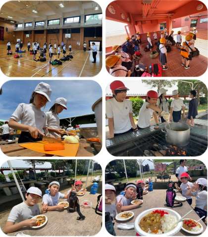 海洋センターに到着して、まずはカレー作りです。みんな上手に野菜を切って、完成させて出来上がったカレーを、みんな「おいしい!」と言いながら、お腹一杯になるまで食べました。