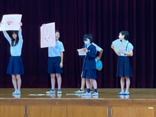 今日の集会は、「絵かきうたクイズ」でした。「アンパンマン」「うさぎ」「かぶと虫」が答えでしたが、全問正解の班が4つもありました。