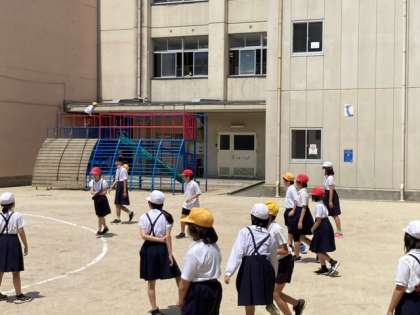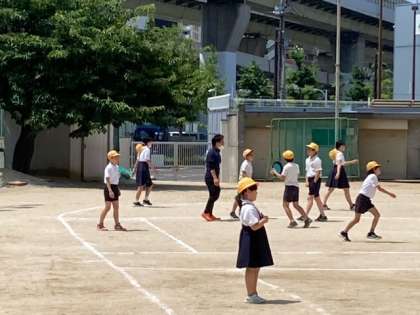 元気な声が響いています。随分、気温が高くなっています。熱中症予防のため、しっかり水分補給をしましょう。