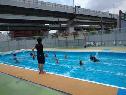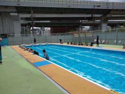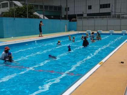 プール開きです。よい天気で気持ちよさそうです。