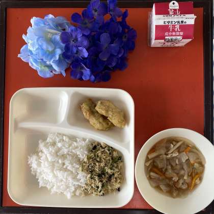 「どれもおいしーい」、「おかわりー」と、みんな食欲モリモリ給食でした。😊