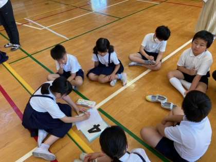 今日は、「ならびかえゲーム」を行いました。提示された文字を並び替えて、言葉にします。少し難しい問題もありました。