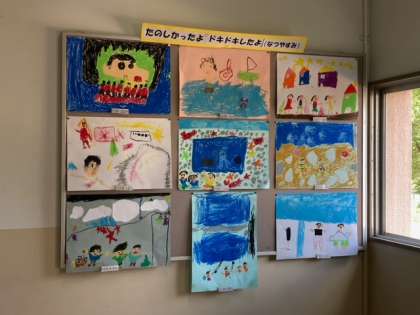 夏休み明けに描いた作品を掲示しています。9月の参観日にご覧ください。