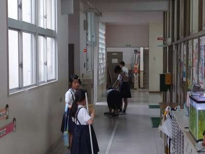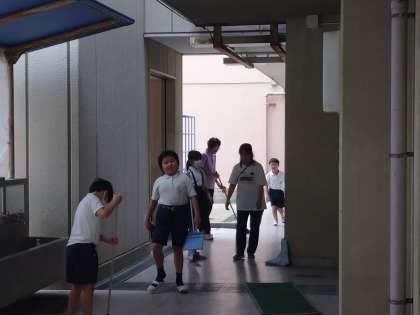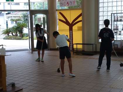 今学期もたてわり班活動が始まりました。班のみんなで協力してきれいに掃除をしました。