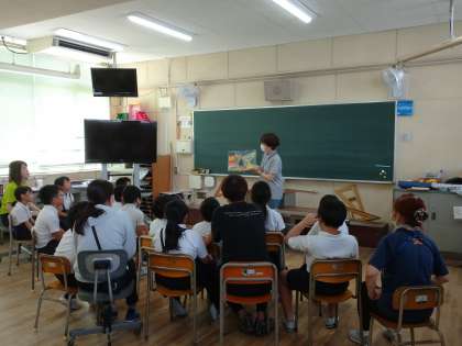 今日は、中央図書館から、読み聞かせに来て頂きました。みんなお話に集中して聞いています。