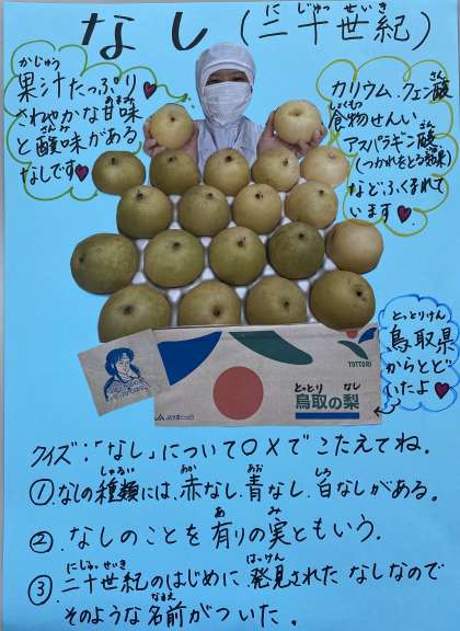 今日の「二十世紀」は1人1/4こですが、調理員さんがていねいに皮をむいてくださりとても食べやすかったです。どのクラスもおかわりのジャンケン合戦でした。😊