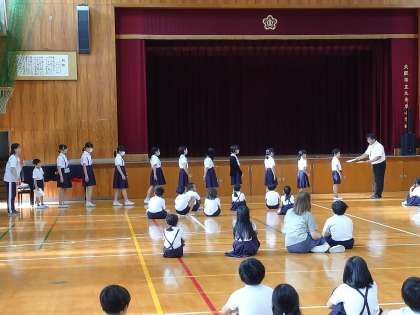こくみん共済絵画コンクールの表彰を行いました。多くの児童が賞状を頂きました。